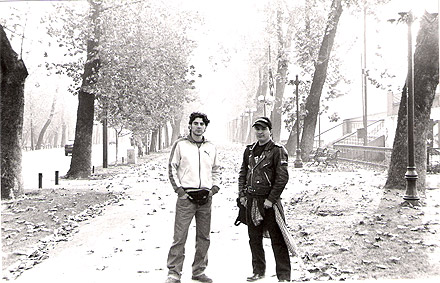 Otoño del 2004. Marcelo y Carlos me enseñan Santiago y derivamos al inefable Parque Forestal, bordeando el Rio Mapocho. Carlos toma las dos cámaras. la del Marcelo y la mia, y tira la misma foto. Dos pigmentaciones, dos estados de ánimo.