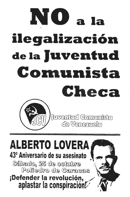 Rebobino de nuevo: tras tantos pasos andados, como ciudadano de a pie, era primera vez que veía a los camaritas locales criollos repartiendo propaganda en la Plaza Bolívar. Y si este es el inicio de una campaña de agitación callejera, pudieron haber dicho algo sobre la infinidad de problemas que aquejan a la gente del país, difundido la propuesta de los candidatos del gallito rojo, comunicado sus propias lineas doctrinales, o, incluso, hasta amplificado la propuesta que ese mismo día la tolda asamblearia comunista proponía en la Asamblea Nacional, que tenía que ver con los megasalarios de los empleados públicos. Los cuatro camaritas, cobijados por las banderitas rojas con la hoz y el martillo, repartían panfletos condenando la ilegalización de la Juventud Comunista de Checoslovaquia.