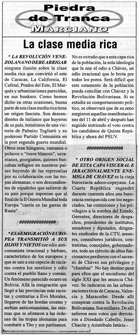 Fascismo de izquierda, anverso del fascismo de derecha Publicado el 4 de diciembre de 2008 por rafaeluzcategui Diario Vea, 04 de diciembre del 2008 Tu voto:Compartir:Compartir Comparte en Facebook (Se abre en una ventana nueva) Facebook Compartir en X (Se abre en una ventana nueva) X Me gusta Cargando... Relacionado