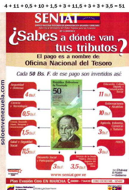 Además del error en la cuenta del aviso publicitario, llama la atención el hecho de que los 10 items, el correspondiente a las Fuerzas Armadas reciba la cuarta más alta cantidad de ingresos, aunque podría ser la tercera, debido a que cosas no menores como la educacion, cultura, deporte y comunicación social debieron meterse en un mismo renglón para sumar una cifra mayor. Los milicos vernáculos reciben mas que las instancias de participación, superan a la agricultura y al comercio y estan muy por encima de lo destinado a ciencia y tecnología. Militarización a paso de vencedores.