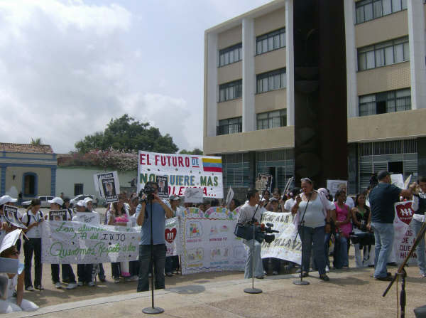 Antes de cercar el Palacio de Justicia algunas de las madres cuyos hijos han sido asesinados a manos de la policía y del hampa dieron sus testimonios. Nohelia Villegas, mamá del joven Rolando Villegas, ultimado en 2008 en Sanare, enfatizó que en el caso de su hijo la justicia respondió tras las numerosas diligencias que efectuó. «Le digo a las señoras que tienen casos como el mío que tengan valor y perseverancia, porque aunque no vamos a ver más a nuestros hijos queda la satisfacción de que la ley penaliza a los culpables».