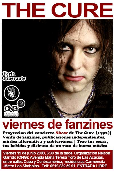 Este 19 de junio de 2009 será el segundo viernes de fanzines en Caracas, con la proyección del concierto Show de la banda inglesa The Cure; una grabación realizada en The Palace, Auburn Hills, en la ciudad de Detroit en junio de 1992. Entre los temas registrados se encuentran ‘Tape’, ‘Open’, ‘High’, ‘Pictures Of You’, ‘Lullaby’, ‘Just Like Heaven’, ‘Fascination Street’, ‘A Night Like This’, ‘Trust’, ‘The Walk’, ‘Let’s Go To Bed’, ‘Friday I’m In Love’, ‘In-between Days’, ‘From The Edge Of The Deep Green Sea’, ‘Never Enough’, ‘To Wish Impossible Things’, ‘Primary’, ‘Boy’s Don’t Cry’, ‘Why Can’t I Be You’ y ‘A Forest.’, dos horas de la mejor época de la banda dark.