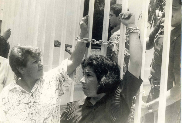Encadenamiento:Reseña el encadenamiento que realizaron familiares de COFAVIC en las puertas de Miraflores para que se abrieran las fosas comunes.