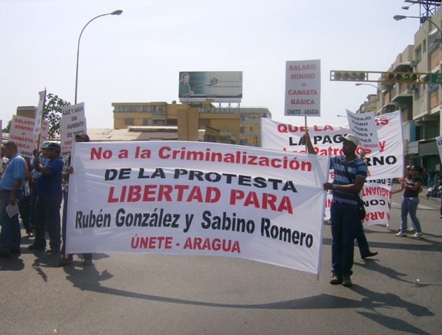 En lo que fue un despliegue desproporcionado de la fuerza pública, el pasado viernes 12 una marcha de trabajadores y trabajadoras fue reprimida en la ciudad de Maracay. Esta convocatoria, realizada entre otras organizaciones por la Unión Nacional de Trabajadores del estado Aragua, constituía un paso importante por parte de la dirigencia sindical para retomar una agenda de movilizaciones con reivindicaciones estrictamente laborales, una situación torpedeada por la febril polarización política experimentada por la sociedad venezolana en los últimos años. Esta necesidad de volver a la calle se traducía en una multiplicidad de exigencias, que iban desde el rechazo al paquete de medidas económicas y el alto costo de la vida; la exigencia de justicia en el caso del asesinato de los dirigentes Luis Hernández, Richard Gallardo y Carlos Requena; la salida de las trasnacionales petroleras del país; la denuncia de la flexibilización laboral y la libertad para Rubén González y Sabino Romero.