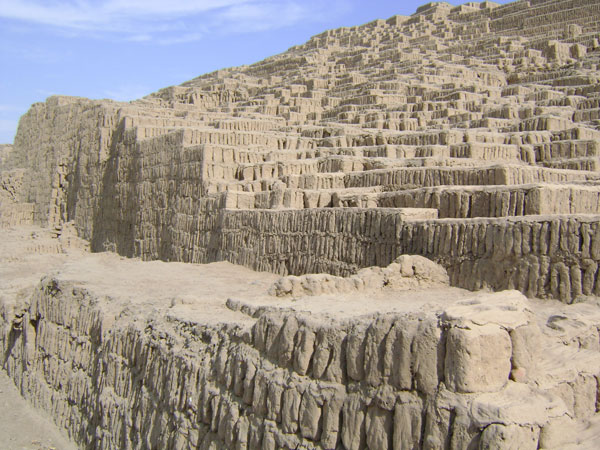 Se trata de una gran pirámide formada por adobitos colocados verticalmente en vez de forma horizontal. Con este tipo de construcción, las construcciones resistían mucho mejor los terremotos.