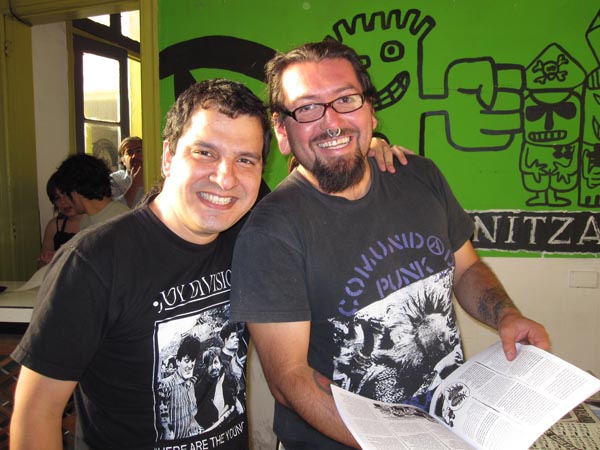 Harold «Neakas punk» se pasó… Viajó de Valparaíso a Santiago sólo para poder tener el gusto de conocernos, después de casi 8 años de carteo e intercambio de material. De la Feria de Cultura Libertaria, radio Los Placeres, Biblioteca de fanzines, jornadas, etc… Si ustedes preguntan por el totem anarcopunk chileno, ese es Harold!