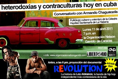 En este conversatorio tendremos la posibilidad de dialogar con Armando Chaguaceda, politólogo cubano y miembro del Consejo Latinoamericano de Ciencias Sociales (CLACSO), quien posee información de primera mano sobre las heterodoxias y contraculturas invisibilizadas tanto por el gobierno cubano como por los sectores dominantes del exilio. El evento se realizará el lunes 11 de abril, a las 7 de la noche, en la sede de la Organización Nelson Garrido (ONG) de Caracas.
