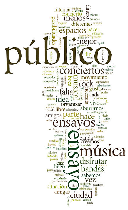 No creemos que los ensayos con público sustituyan a los conciertos. Al contrario creemos que un circuito de ensayos con público, realizados cada fin de semana en todos los barrios y urbanizaciones de la ciudad, es una precondición para que a mediano plazo tengamos más y mejores conciertos. Las bandas merecen sonar de la mejor manera posible, y el público también merece locales apropiados para disfrutar de un buen espectáculo. Pero en lo inmediato esto es más difícil. Promover ensayos con público es la idea que tenemos para aburrirnos menos, aquí y ahora, y generar un movimiento por nosotros y nosotras mismas, que vaya creciendo y expandiéndose. Es mejor intentar esto que seguirnos quejando sin hacer nada.