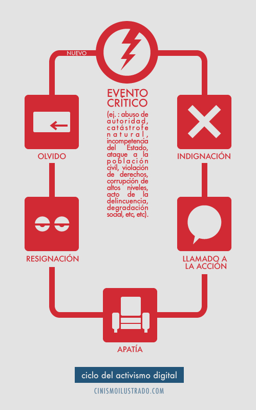 Ciclo del activismo digital Publicado el 29 de agosto de 2011 por rafaeluzcategui Del excelente sitio de ideas gráficas El cinismo ilustrado Tu voto:Compartir:Compartir Comparte en Facebook (Se abre en una ventana nueva) Facebook Compartir en X (Se abre en una ventana nueva) X Me gusta Cargando... Relacionado