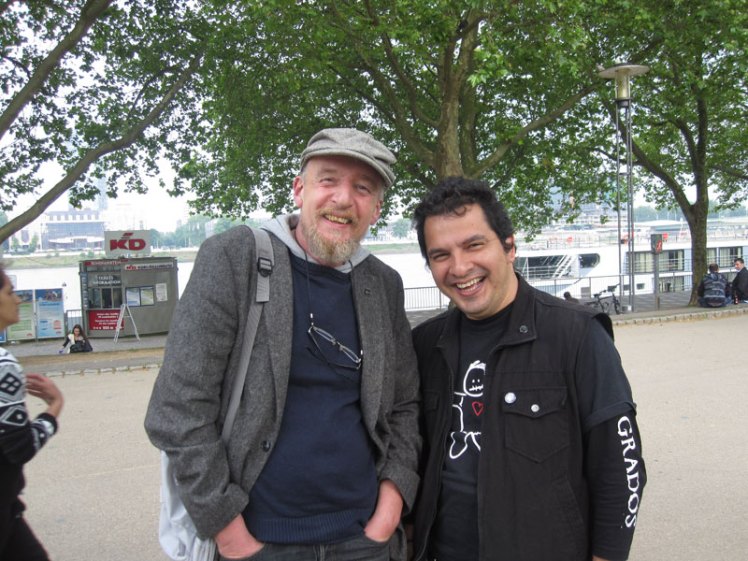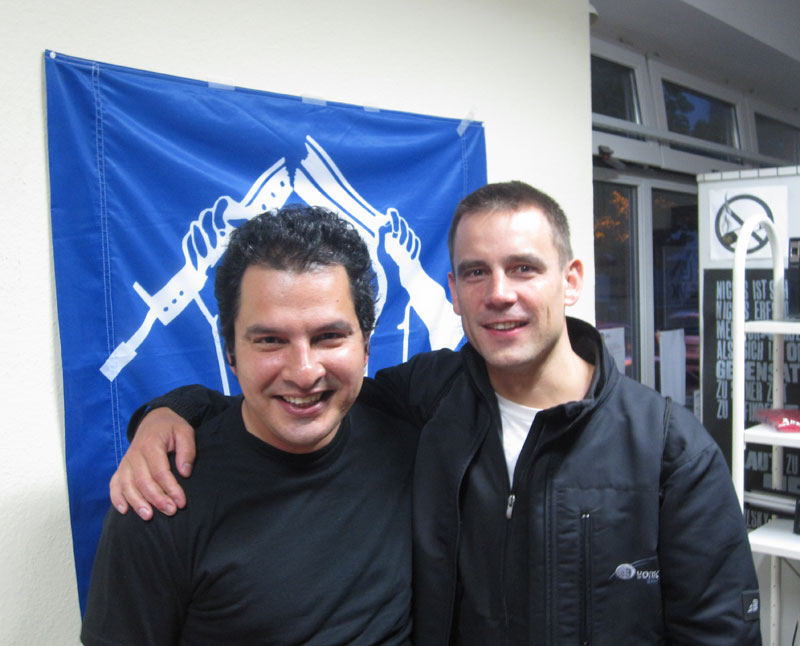 Junto al compañero Peter, quien me hizo la interpretación en el local anarcosindicalista y antimilitarista de Frankfurt.