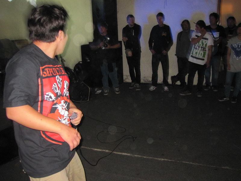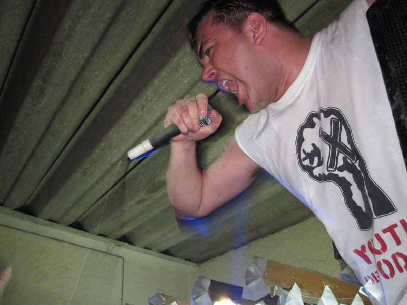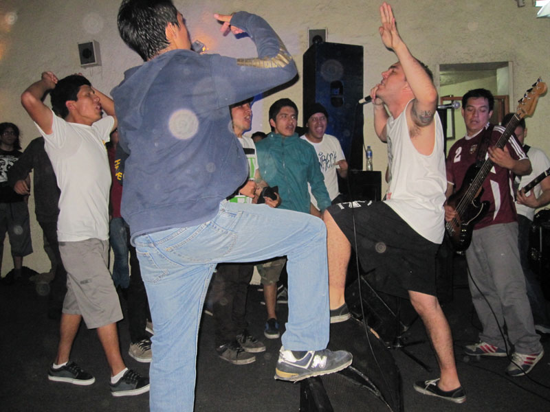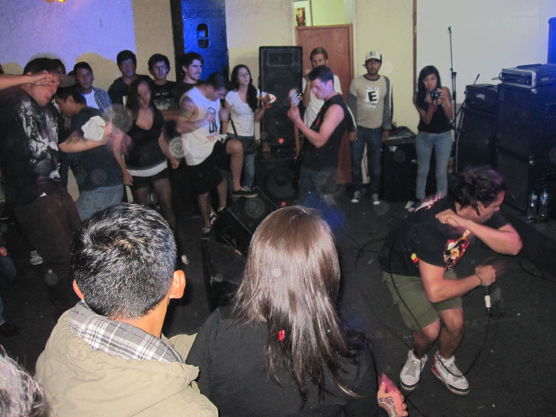 Mi concierto anterior fuera del país había sido en un evento organizado por el colectivo Verdurada de Sao Paulo en donde la pasé endemoniadamente bien. Excelente ambiente, mucha actitud y la gente con ganas de pasarla bien. Y siendo cultores de una vida sana, vegetarianismo y cero drogas, esperaba encontrar algo de esto en el concierto de los Cruel Hand, pero para mi sorpresa, además de la mesa de venta de chelas (impensable en un Verdurada), sólo los Cruel Hand tenían merchandising a la venta. Me quedé con las ganas de pillar algo de material de la gente peruana. Incluso había llevado algunos zines para cambiar que se mantuvieron todo el tiempo en el bolsillo de mi chaqueta.