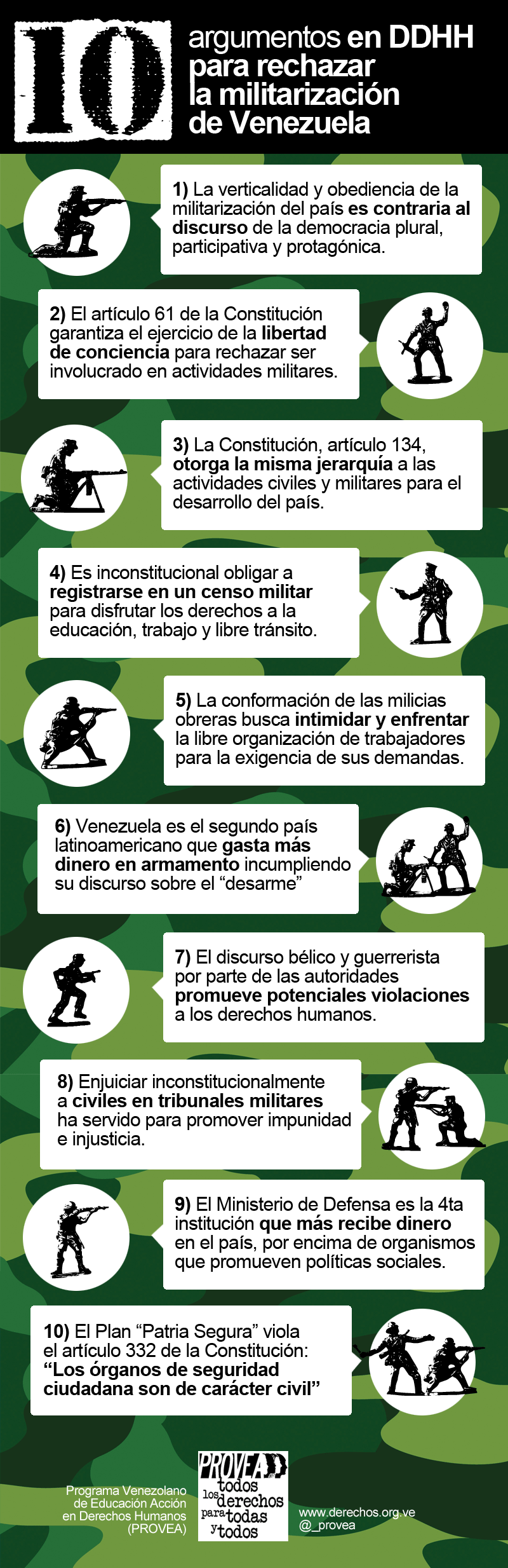 Infografía: 10 argumentos en DDHH para rechazar la militarización dde Venezuela Publicado el 16 de julio de 2014 por rafaeluzcategui Tu voto:Compartir:Compartir Haz clic para compartir en Facebook (Se abre en una ventana nueva) Facebook Haz clic para compartir en X (Se abre en una ventana nueva) X Me gusta Cargando... Relacionado