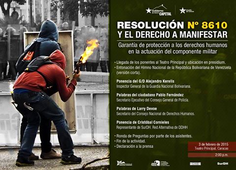 A raíz de la promulgación en Gaceta Presidencial de la resolución No. 008610 del 23 de enero de 2015, que permite la actuación de la Fuerza Armada Nacional Bolivariana (FANB), en su conjunto, en labores de mantenimiento de orden público en el contexto de manifestaciones, diferentes organizaciones de derechos humanos del país hemos cuestionado la constitucionalidad de la norma.