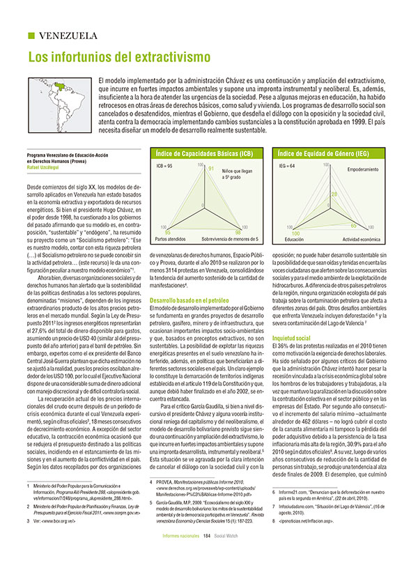 Línea de investigación del año 2011 sobre los impactos sociales y ambientales de las actividades extractivas en el país