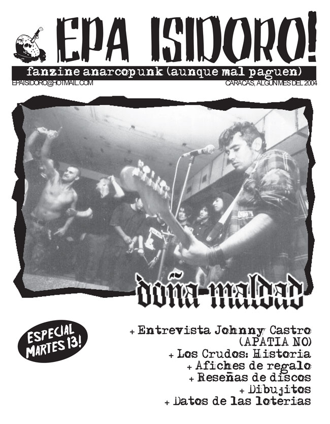 Número único de esta publicación del 2004, fotocopiada y de estética Martes 13, centrada en la música punk underground.