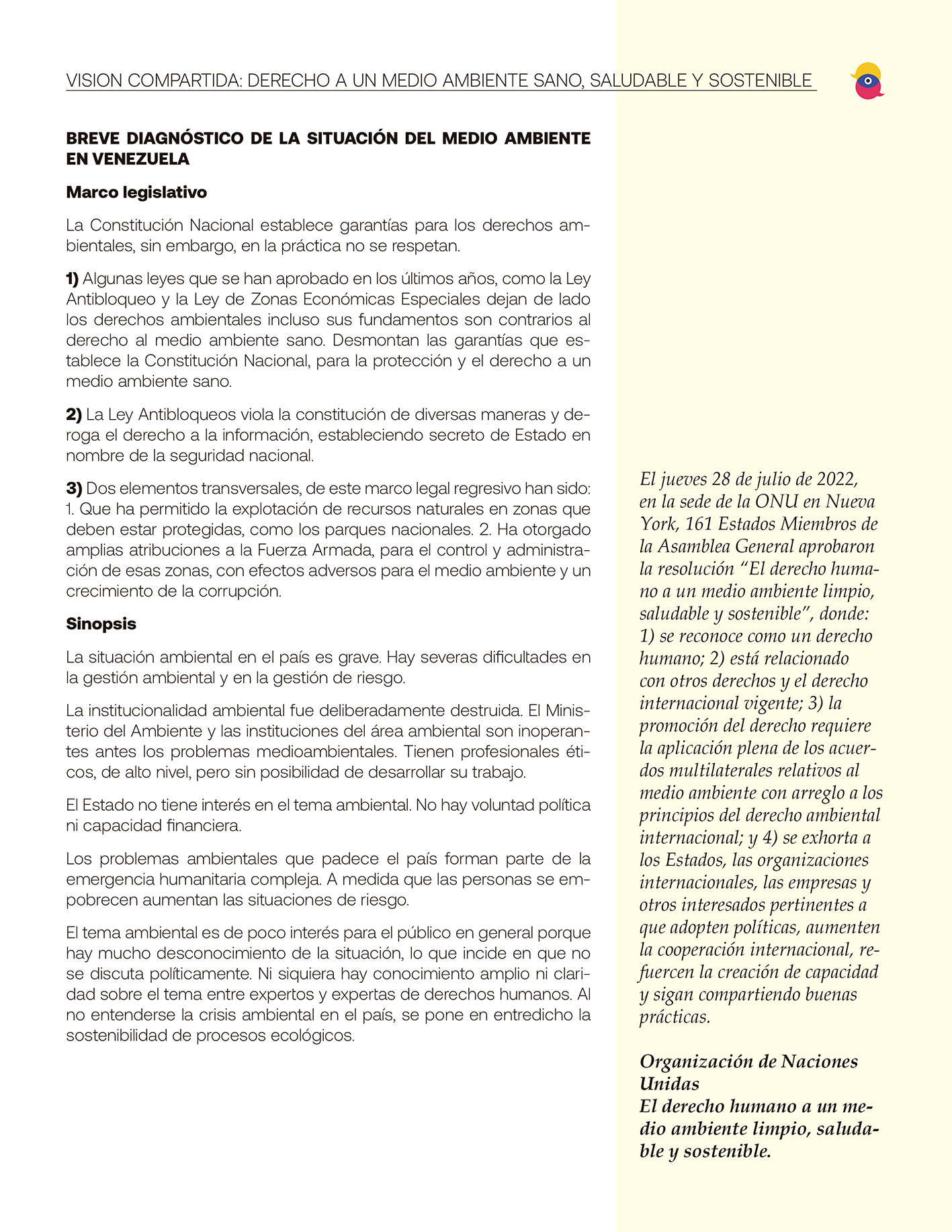 Ejemplo del informe sobre Derecho al Ambiente Limpio, Saludable y Sostenible:
